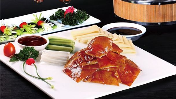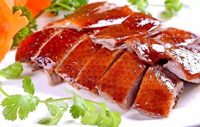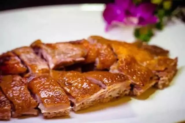 采用独家酱料烤制而成的鸭子鲜艳油亮,皮脆肉嫩。搭配薄薄的面皮、香甜的面酱、鲜嫩的葱丝、爽脆的青瓜,口感丰富,一解烤鸭的肥腻。