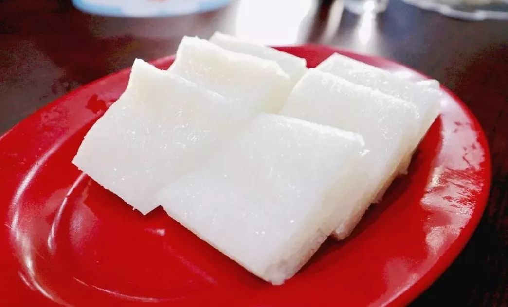 与别的糕点不同,伦教糕糕体晶莹雪白,表层油润光洁,内层小眼横竖相连,均匀有序,吃来清甜爽滑,齿颊留香。