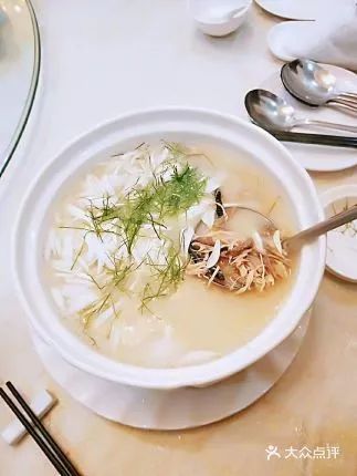 天气炎热之时,常常会让人产生饱腻感,一碗金菊花海鲜鱼茸羹入胃,味道鲜甜清香而不腻,口感层次分明,鱼肉的鲜美与羹汤的嫩滑完美融合,清清的水乡情思悠悠入怀。
