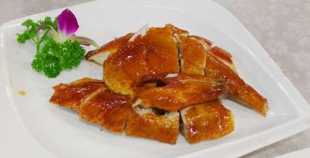 烧鹅是一道传统粤式烧味,出品要求肉香皮脆。日盛世濠龙凤呈祥店大厨就在“皮脆”这一点上下功夫,经过改良和提升,使烧鹅成色酷似琥珀却剔透脆皮,鹅皮更达到“一咬就断,再咬就碎”的酥脆效果。