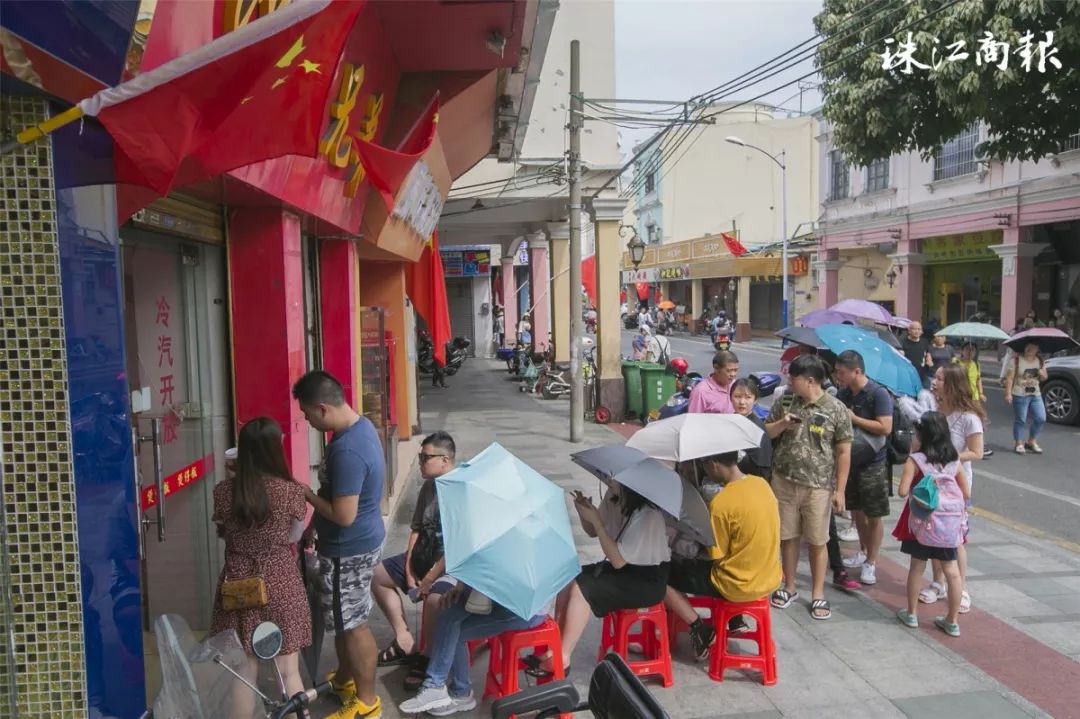 ▲顺德众多“网红”餐饮店外都大排长龙。/珠江商报记者朱德文摄