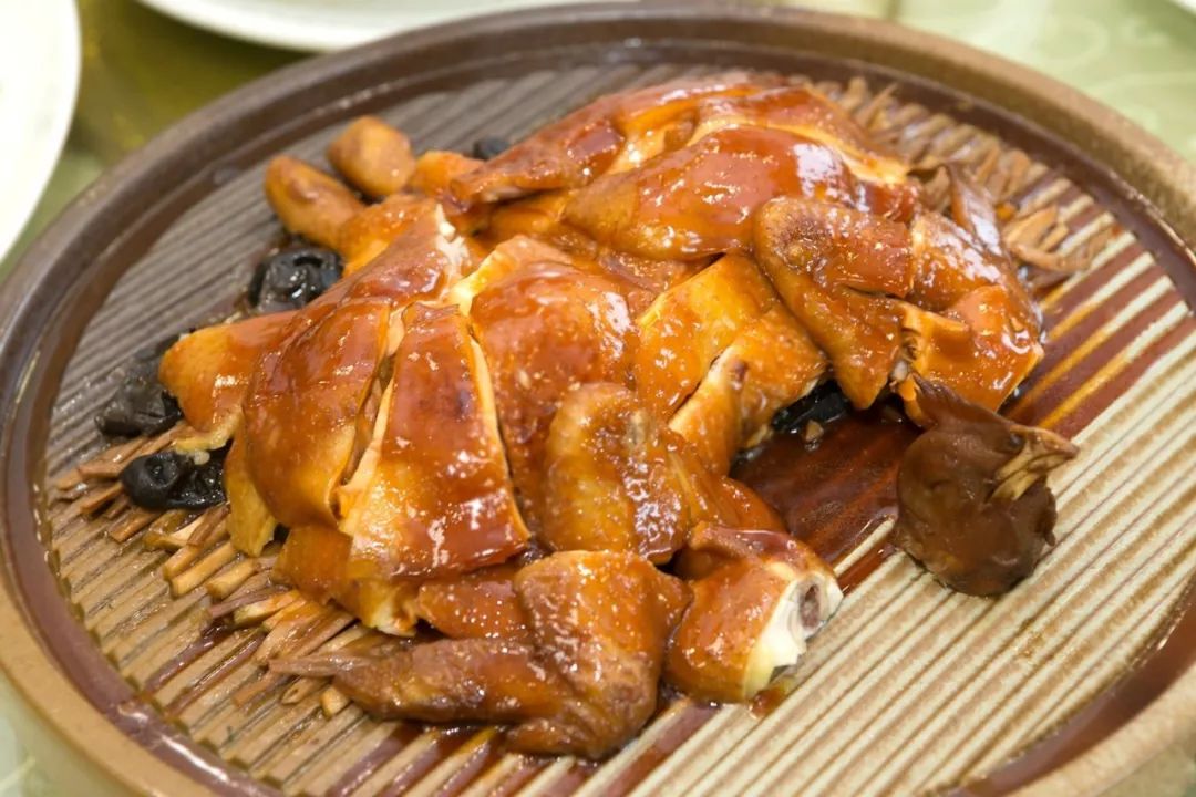 皇帝脆皮鸡皮薄而脆,仿佛一层覆盖在鸡肉上的透明糖衣,火候掌握得刚刚好的鸡肉鲜嫩多汁,一点都不油腻。