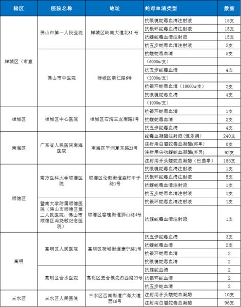 佛山哪些医院有抗蛇毒血清?