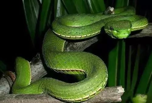 竹叶青比较好认,它的特点是全身绿、眼睛红、尾巴黄。眼睛绿,尾巴也绿的蛇,是翠青蛇,具攻击性,有毒。竹叶青这家伙喜欢挂在树上,人从树下过,脖子碰到它,就会被咬到脖子,脖子肿起来,压住气管,就会把人给闷死。