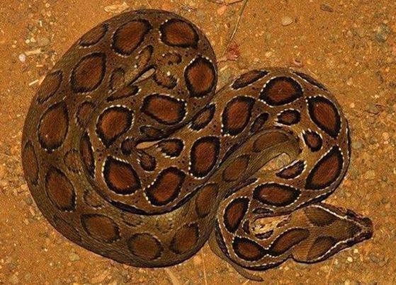 这种蛇很容易认识。它遇到人会团成一团,把头埋在身体下面,看起来很害羞,温顺,但是你要是去抓它,那它就会狠狠地咬上你一口。这种蛇的危险之处,在于被咬了还不肿痛,所以人们往往会麻痹大意。一旦过了半小时到四小时,毒性发作,就会因呼吸肌肉麻痹,呼吸停止而死。