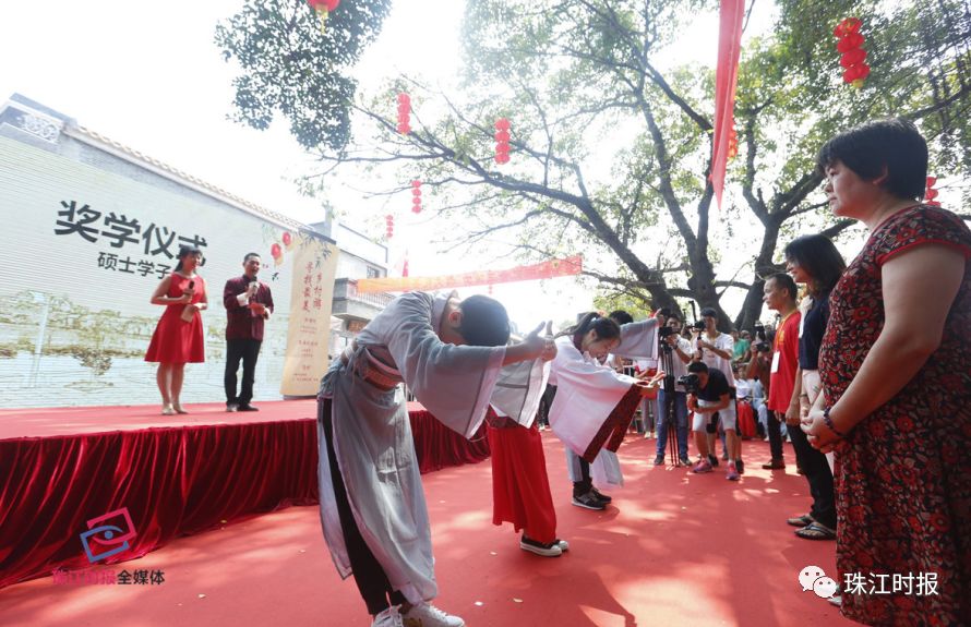 ▲2019年度考取硕士的学子致敬父母。珠江时报记者章佳琳摄