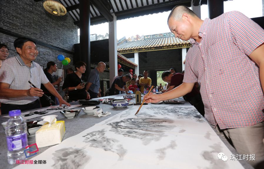 ▲活动现场画家挥毫。图: 珠江时报实习生 廖明璨