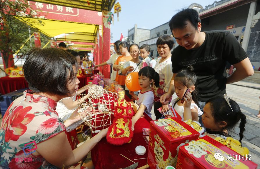 ▲现场“佛山狮头扎作”非遗摊位吸引小朋友前来。珠江时报记者章佳琳摄