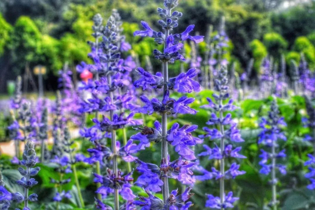 这片紫色的“小精灵”,叫蓝霸鼠尾草,为多年生草本,叶对生,轮伞花序,顶生,花紫色,原产于欧洲南部。