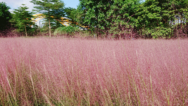 在世纪莲附近的莲韵花田处连绵成片的粉黛乱子草正烂漫绽放,仙气十足!