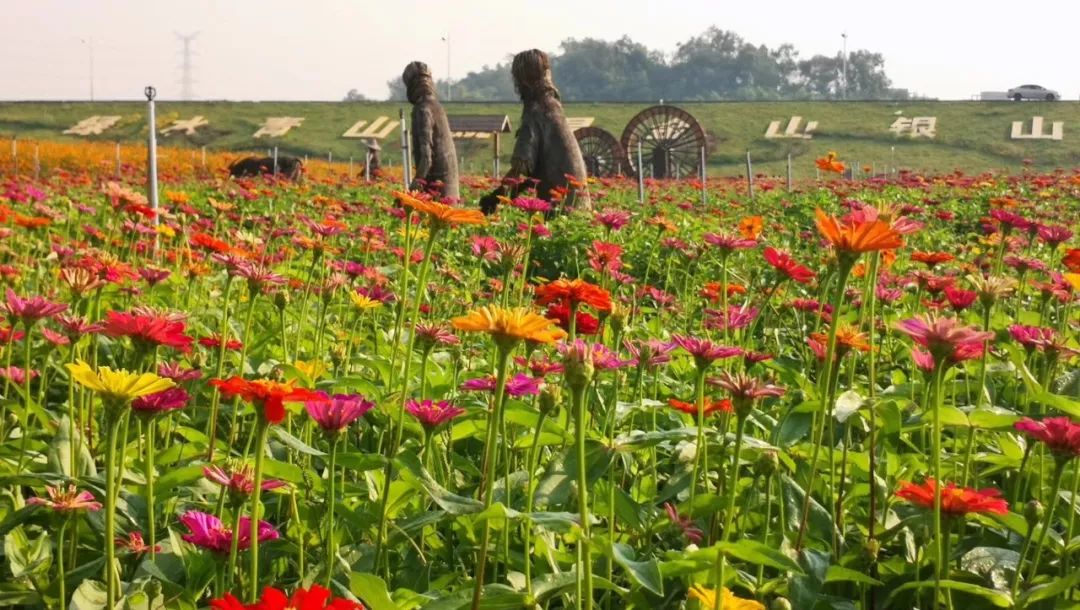 万寿菊、百日草、孔雀草、千日红……微风拂过花海,连绵不绝的花朵随风摇摆,分分钟俘获你的少女心。