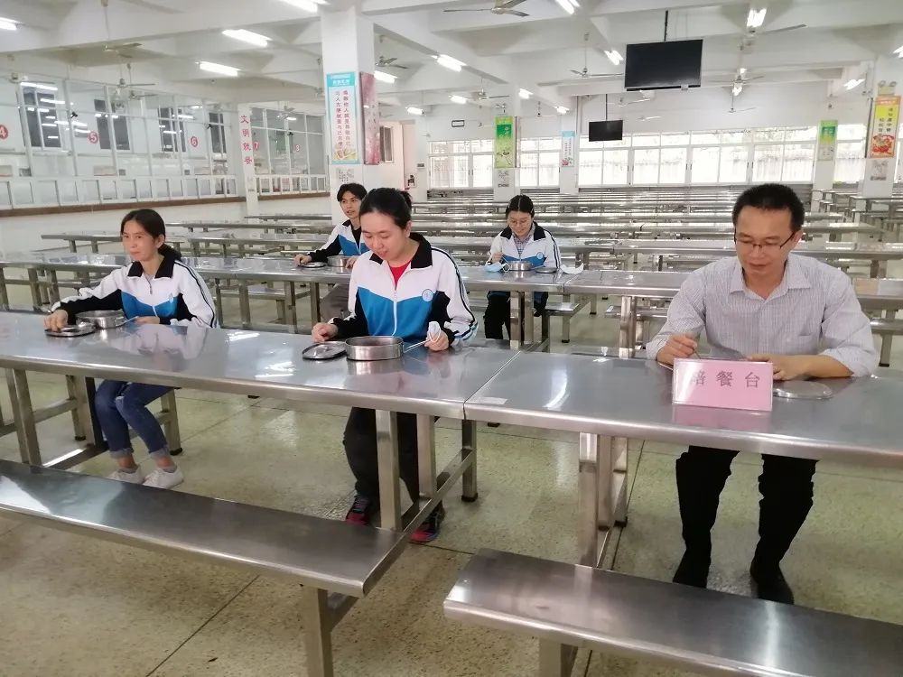 三水中学附属初中有2000多名学生在校就餐。复学后,该学校将实行各年级学生分批错峰就餐。在值日老师的指引下,学生按照1米以上的安全距离排队取餐,并有生活老师监管排队情况。取餐后,学生每人相隔1米以上同向就坐用餐,用餐过程中不相互交谈。学校每天按时对学生用餐场所进行清洁、消毒、通风。