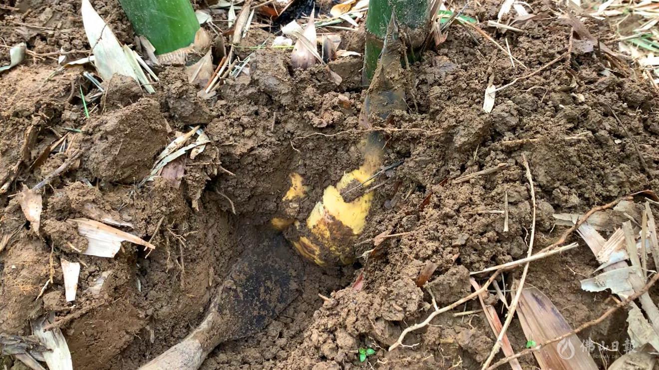 冒出泥土的张槎沙口笋。/佛山日报记者黄群飞摄。