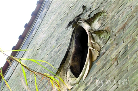 梅花村古宅墙顶的梅花窗。
