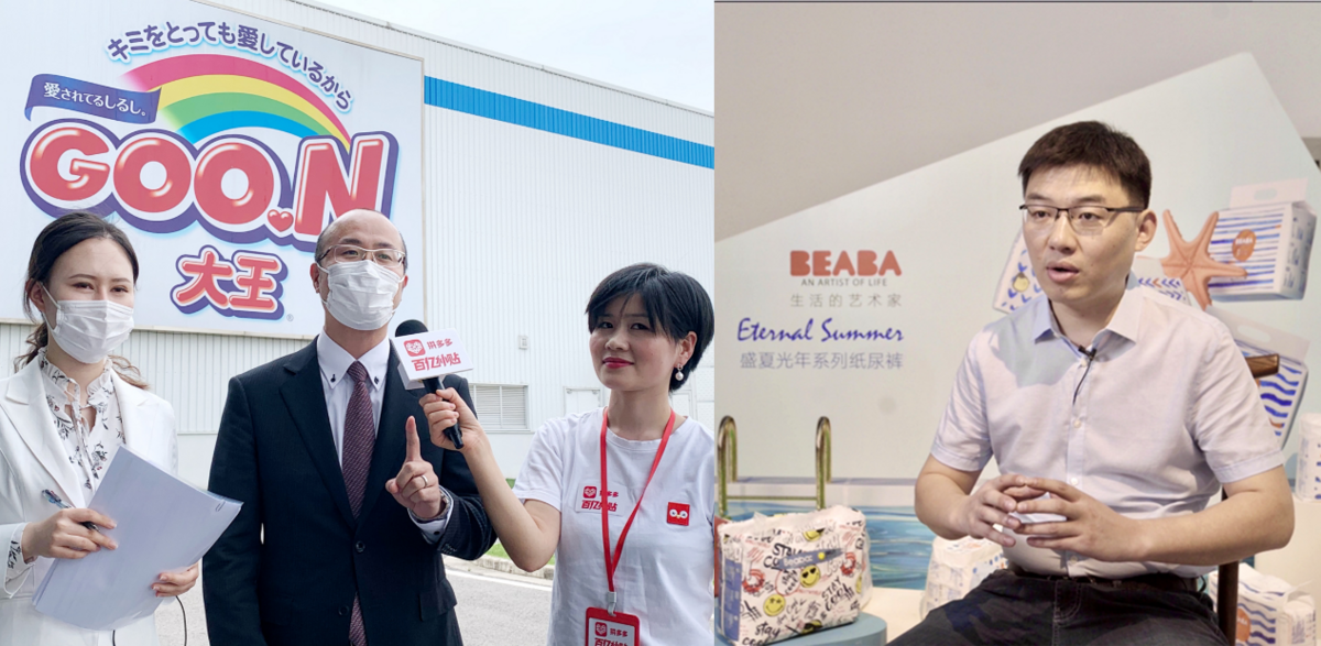 拼多多“母婴产品溯源行动”此前还探访过大王(左)、BEABA(右)等纸尿裤品牌工厂。(穆功 摄)