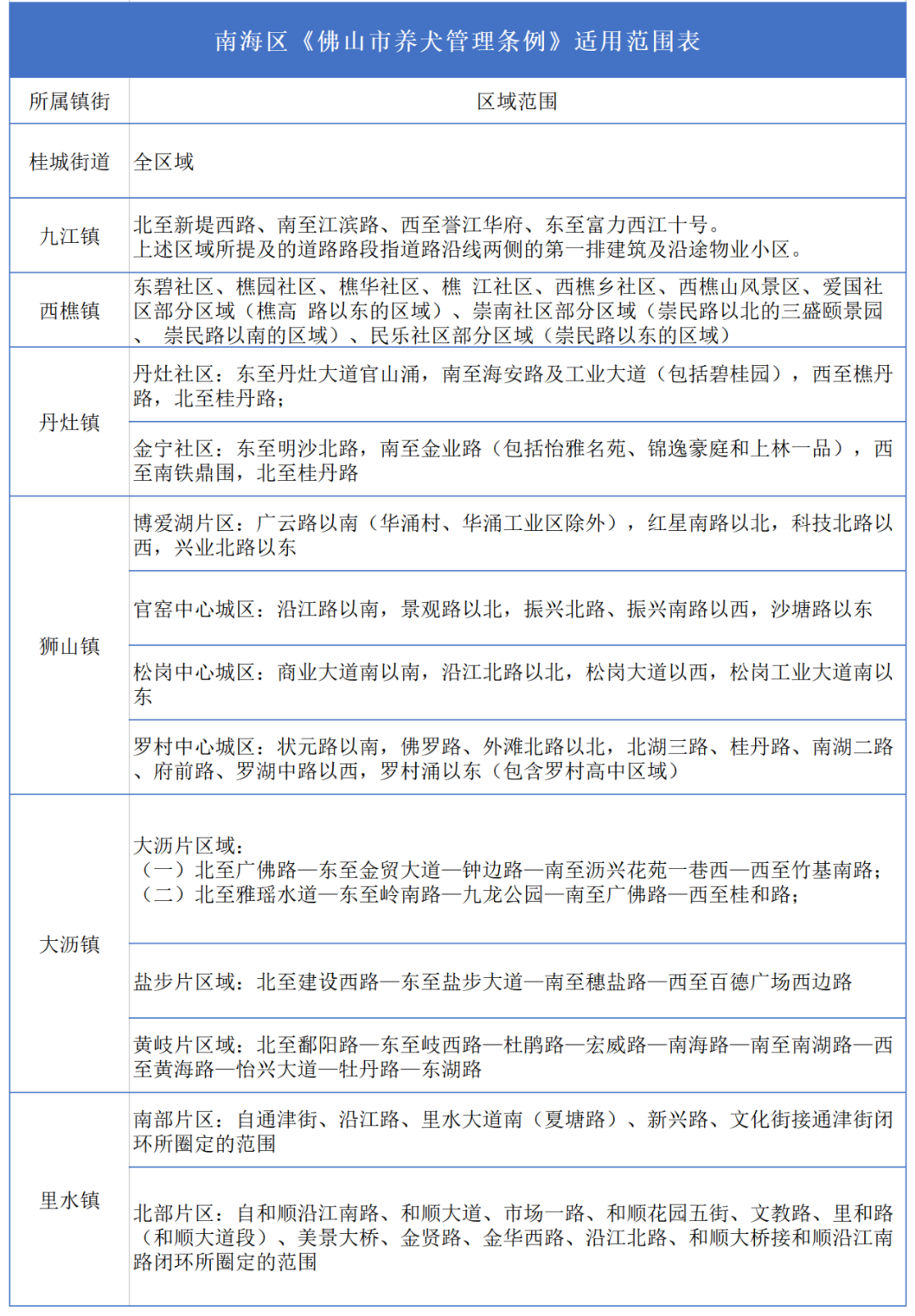 在南海区,已公布《南海区养犬管理城市市区范围》,对区内七个镇街的多个片区养犬管理城市市区范围进行划分。
