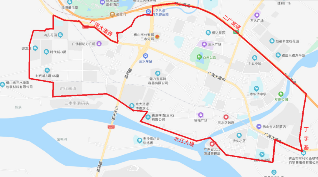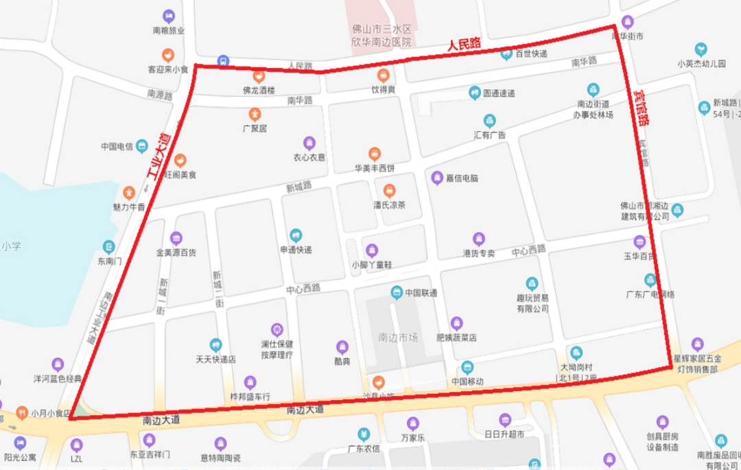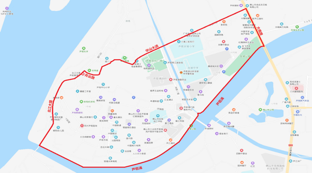 盐步片区域:北至建设西路—东至盐步大道—南至穗盐路—西至百德广场西边路。