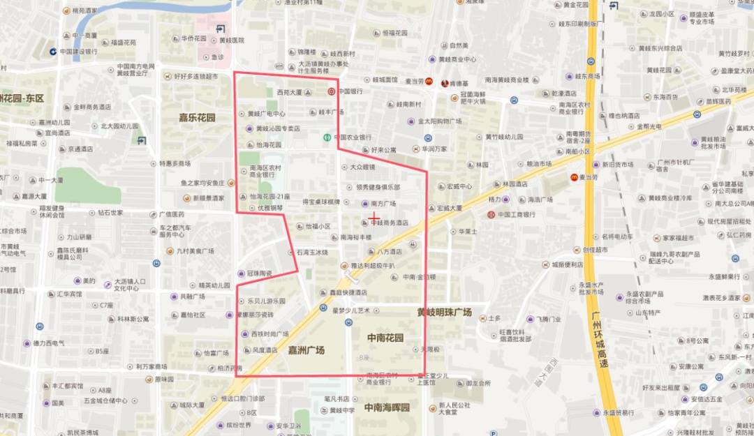 黄岐片区域:北至鄱阳路—东至岐西路—杜鹃路—宏威路—南海路—南至南湖路—西至黄海路—怡兴大道—牡丹路—东湖路。