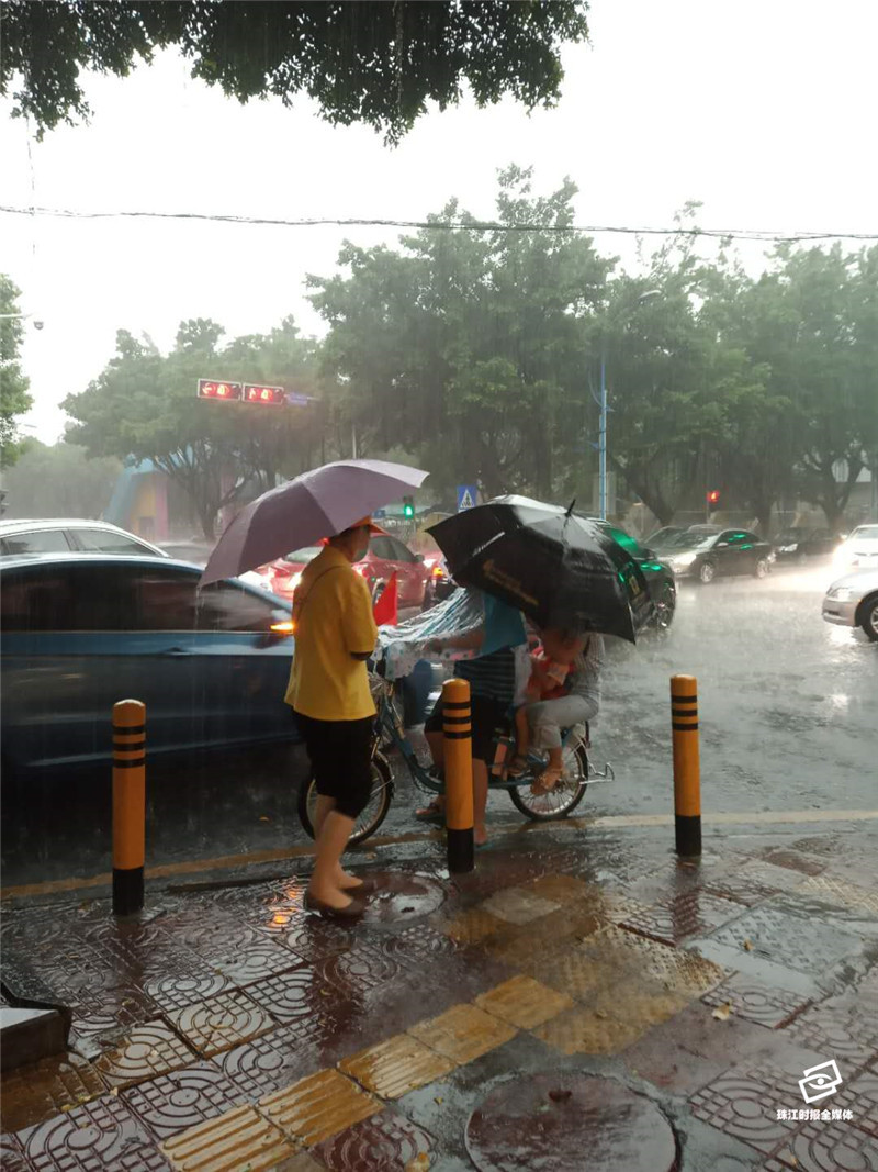 劝导员冒雨坚守岗位,撑起狮山交通安全屏障。通讯员供图