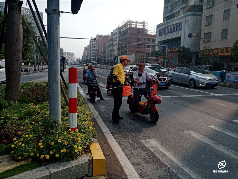 珠江时报讯(记者/李福云 通讯员/李燕丽)“骑电动车上路一定要规范戴头盔,遵守交通规则,安全最重要。”10月20日下午,在博爱中路红绿灯口,文明劝导员刘叔不厌其烦的,对过往摩电驾驶员违规行为进行劝导。