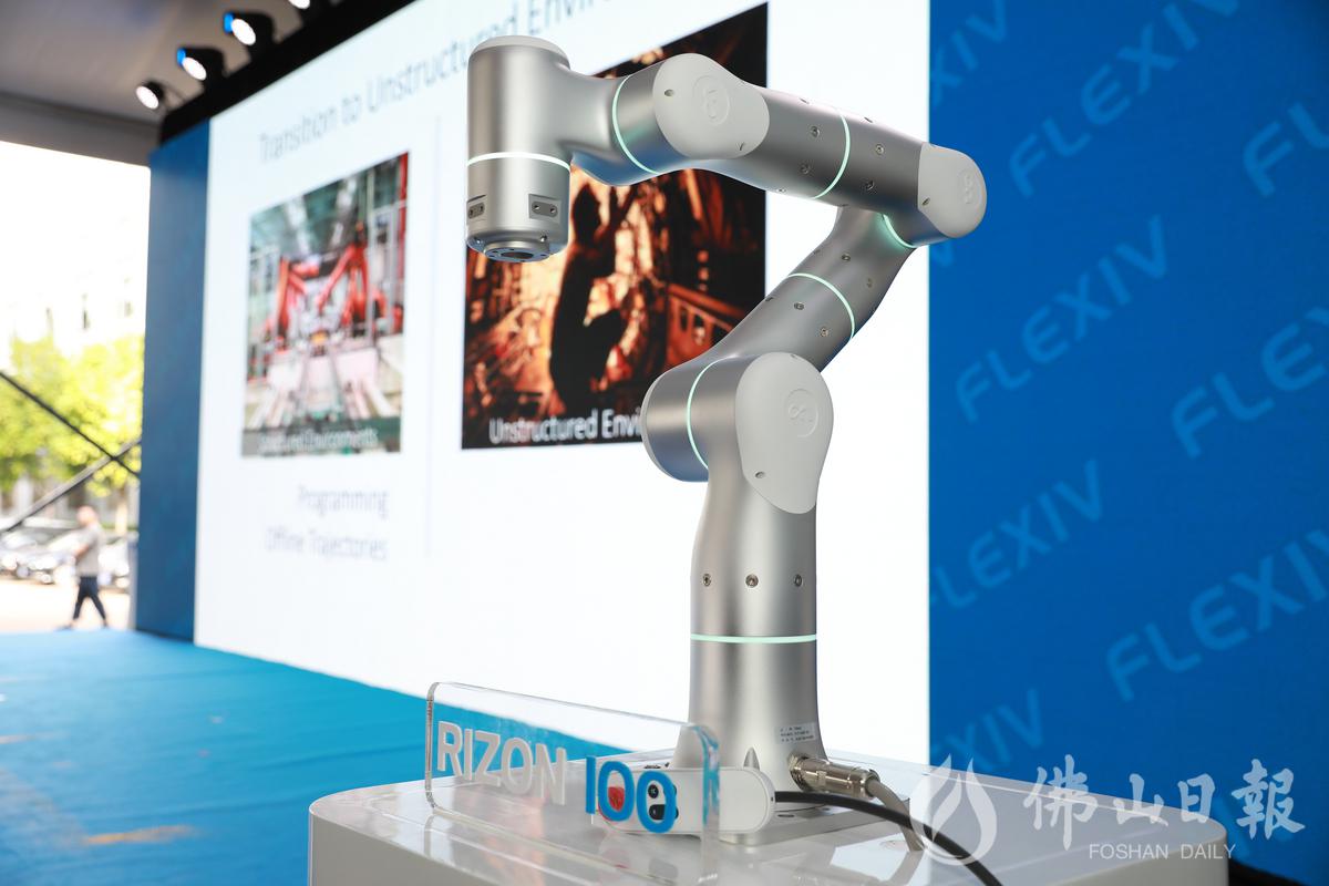 现场展示非夕机器人的第100台力控机器人产品。/佛山日报记者张弘弢摄