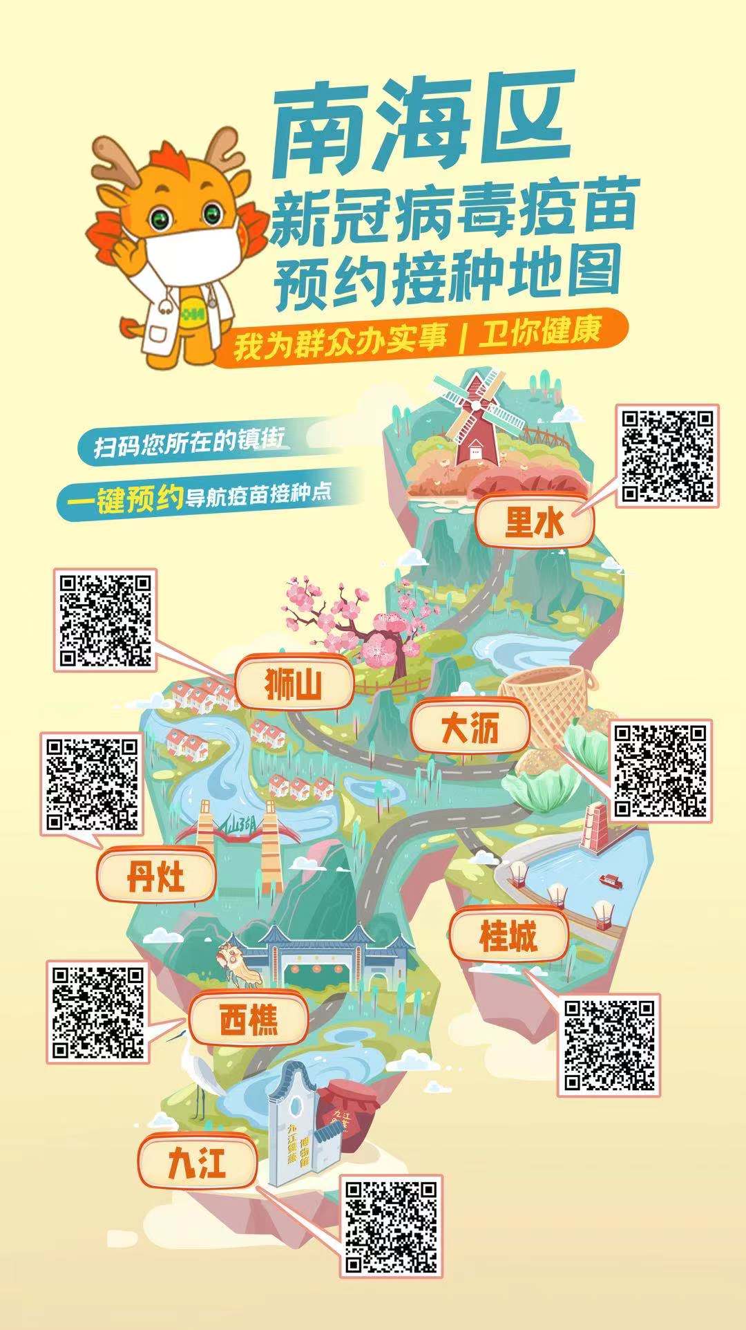 5月1日,南海区新冠病毒疫苗预约接种地图正式上线,涵盖了南海区全部大型接种点的地址、导航、预约方式。