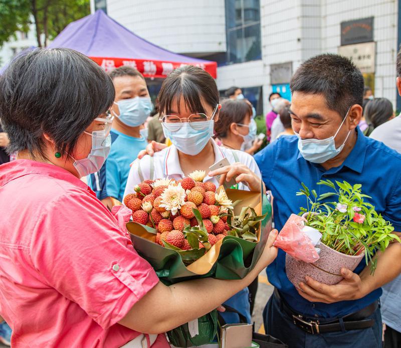 佛山一中考点前,一名考生收到父母送来的“荔枝花”。/佛山日报记者周春摄