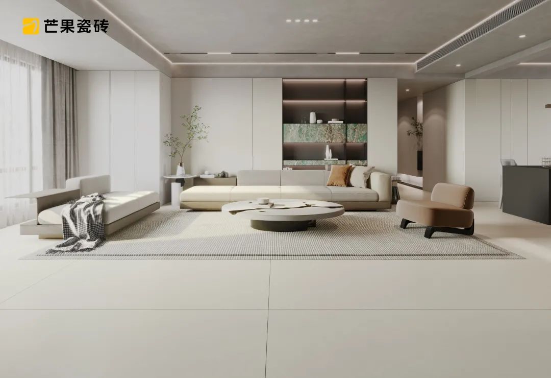 芒果瓷砖,从色彩、光感、肌理感、质感四个维度全新升级与进化,让空间在感官上,更内敛,更具品质感,更舒适、更温暖、更雅致。