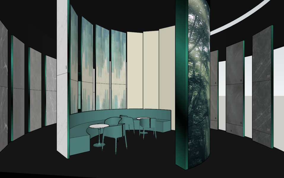 设计灵感:在北欧神话中,阿瓦隆是神奇的森林仙境,充满奇珍异宝。此系列以绿植作为设计灵感,通过马赛克像素的处理手法,同时添加了特殊的闪光粒子,营造出神秘、高雅的视觉效图,为空间带来自然、舒适的品质感与轻奢感。