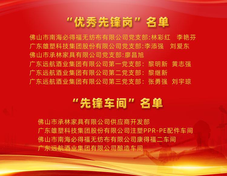 10月12日,九江镇为4个“先锋车间”以及10个“优秀先锋岗”授牌,康得福二车间正是4个“先锋车间”之一。来自远航酒业集团有限公司、承林家具有限公司、雄塑科技集团股份有限公司等非公企业的集体和个人也榜上有名。