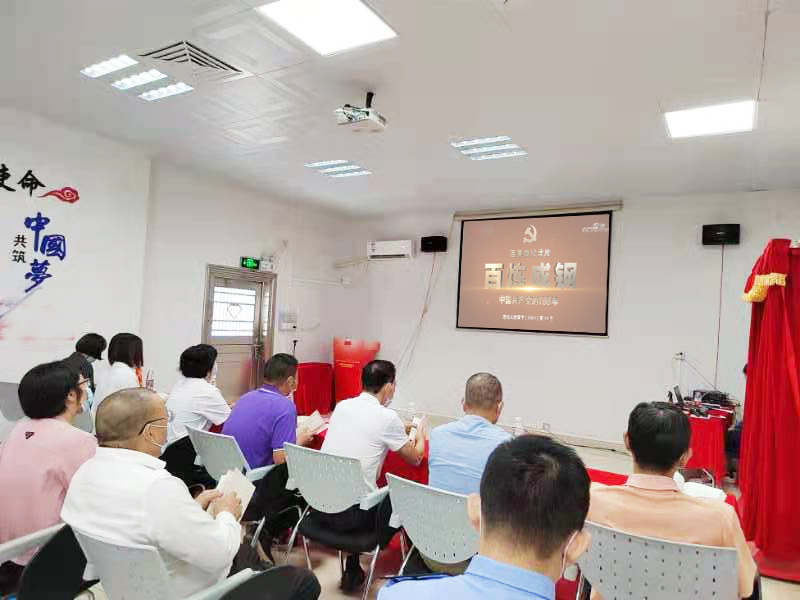 流动党员在观看党史学习纪录片。