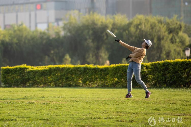 明湖公园草坪成为群众运动的最佳场所。图为市民在草坪上玩飞盘。