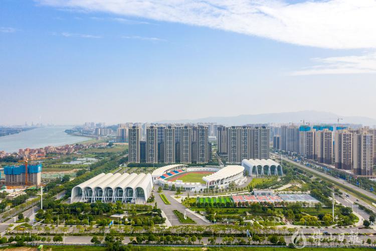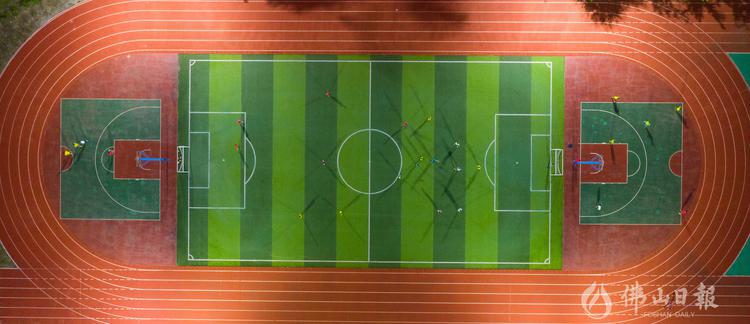 俯瞰高明体育中心,体育场馆坐落在城市中间,极大地丰富了市民的文体硬件。