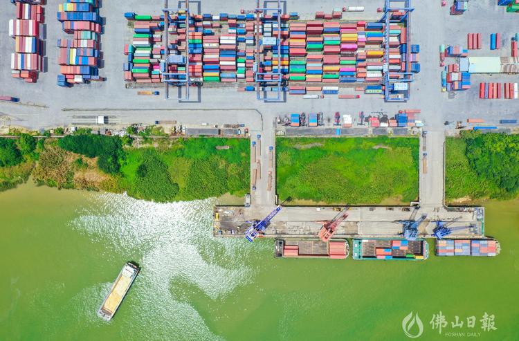 高明珠江货运码头繁忙运作。西江不仅为高明带来水资源,更为本地创造了航运价值。