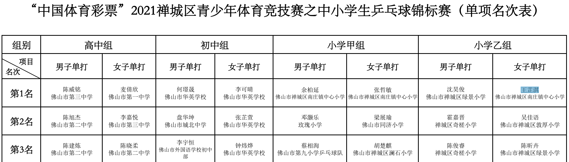 禅城区中小学生乒乓球锦标赛收拍!这些获奖学校和个人有你认识的吗