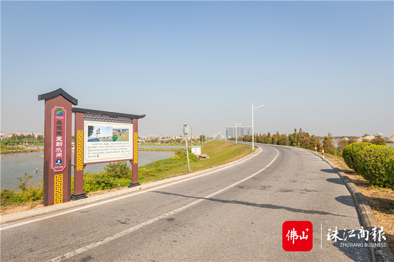 龙江沿桑园围增设多处宣传牌,介绍沿途的水闸、旧码头等。/珠江商报记者林安迪摄