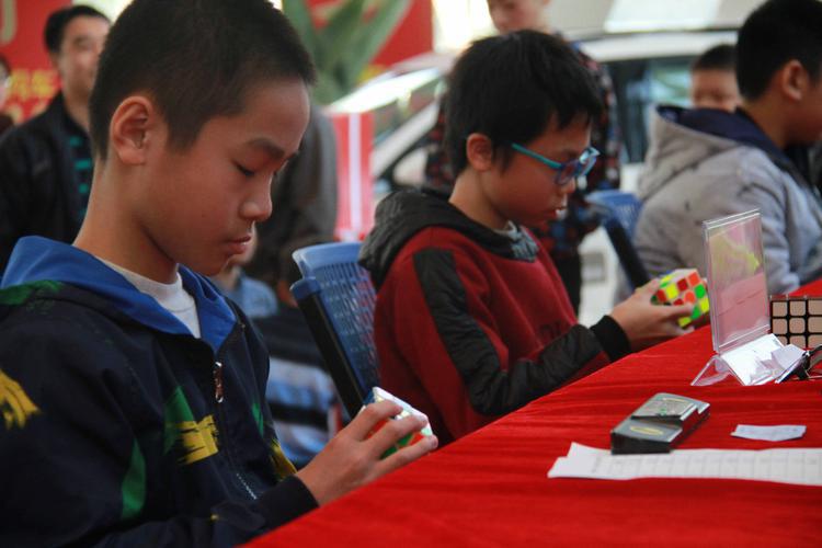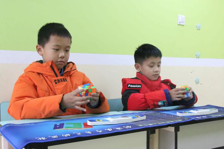 在魔方比赛上,学员正在比拼魔方复原速度。受访者供图