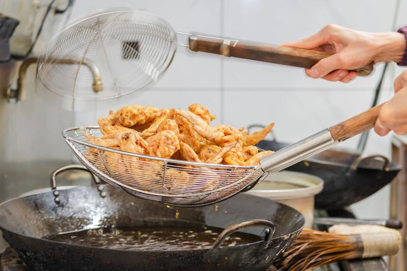 譬如,为了让炸鸡翼够入味,每只鸡翼都要腌制40分钟以上;为了让鸡翼里面的鸡肉能够酥一些,伦桂强不仅严格控制油温,使油温不能太高也不能太低,还要将鸡翼反复煎炸半个小时以上。这样,刚刚炸出来的鸡翼才能香脆可口、饱满多汁、脆皮咸香。