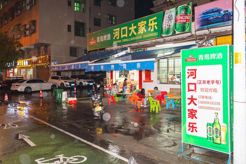 一开始,伦桂强只是做炸鸡翼、老火粥等简单的几种菜式。没想到,小吃店开业后一炮而红。不少市民纷纷过来寻味。后来店面越做越大,伦桂强也增加了炒田螺、煎米粉等菜式,不断满足食客们的味蕾。河口大家乐也逐渐改到晚上营业。伦桂强说,之所以只做夜市,一是照顾那些工作较晚下班的食客,二是夜幕降临时,烟火味比较浓,更能温暖食客的身心。