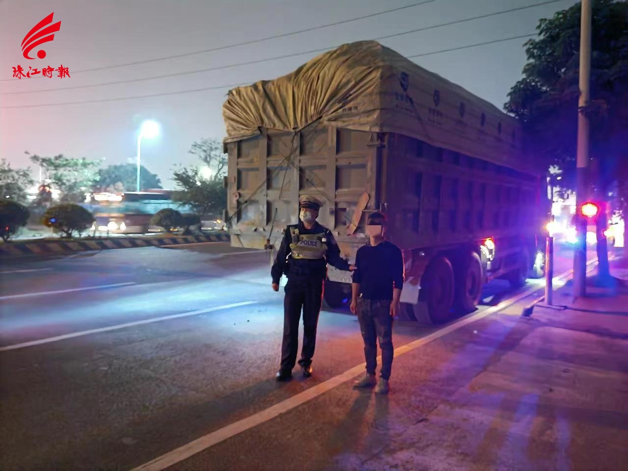 4月20日晚上,南海区公安分局交警大队罗村中队(下称“罗村交警中队)在兴业路开展交通违法整治行动。19时40分许,一辆满载的粤M号牌重型自卸货车行驶到执勤路段,现场执勤人员发现该车涉嫌超限超载,遂指引驾驶员张某靠边停车接受检查。期间,民警隐约闻到张某身上散发些许酒气,于是对其进行呼气式酒精测试,结果显示数值为33mg/100ml,属于酒后驾驶。