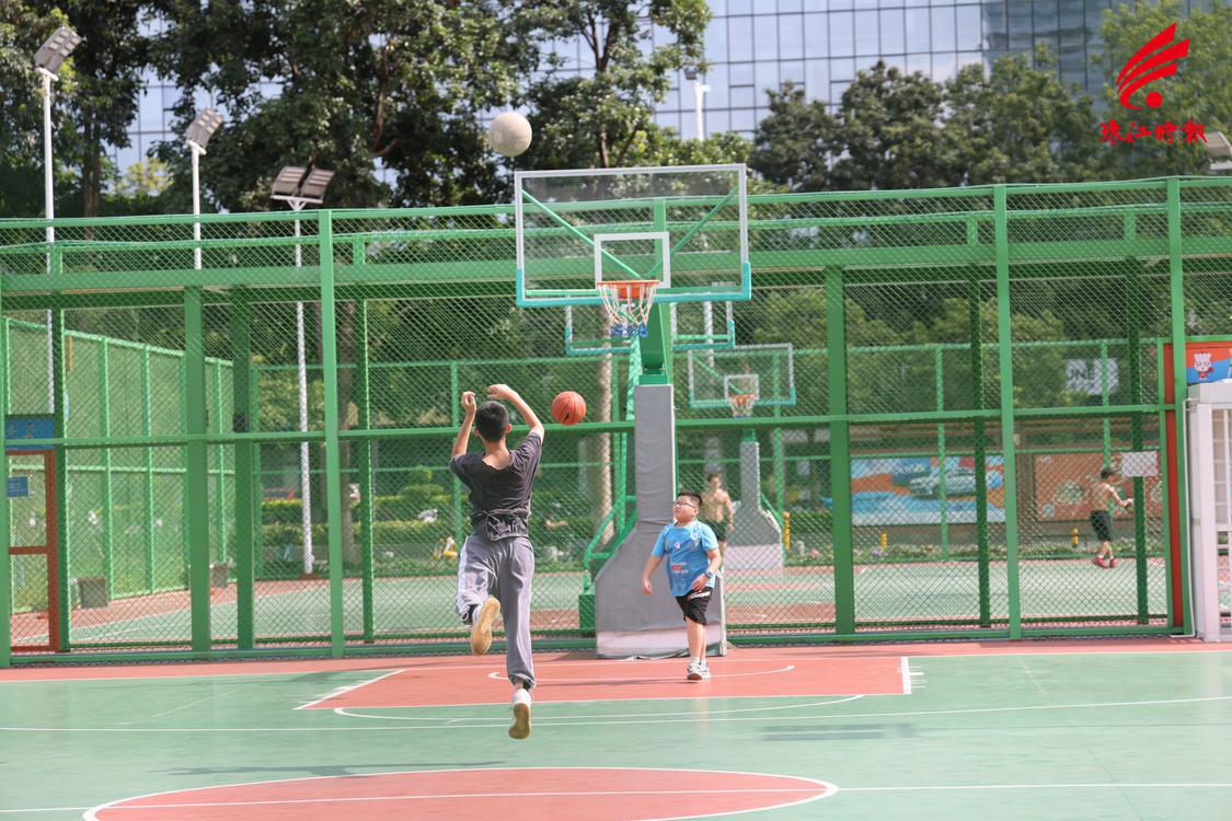 青少年在千灯湖体育公园打篮球。珠江时报记者 穆纪武 摄