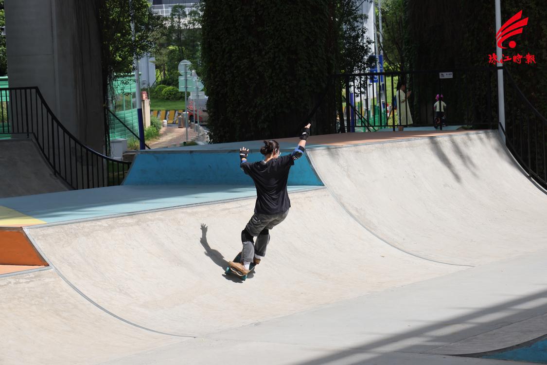 市民在玩滑板。珠江时报记者 穆纪武 摄
