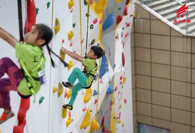 小朋友体验攀岩。