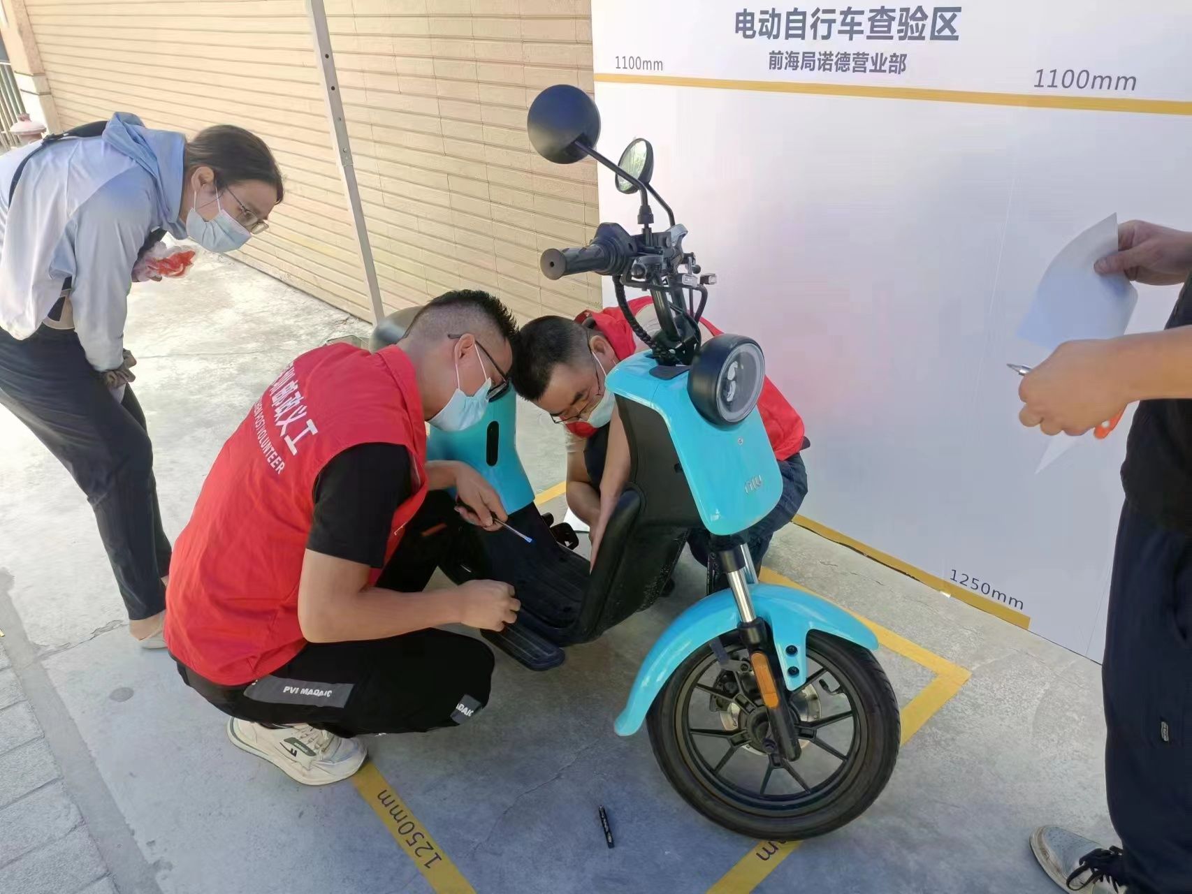 目前,深圳邮政按照交警部门统一标准,首批建设了95个网点办理电动自行车上牌登记代办服务点,为市民提供车辆现场查验、安全学习、缴费选号及车险选购服务。邮政网点现场依次设置了导办区、安全学习区、查验区、保险服务区、缴费选号区等功能性区域,并结合疫情防控和防暑降温要求,做好现场遮阳、通风、防暑物料配备工作。