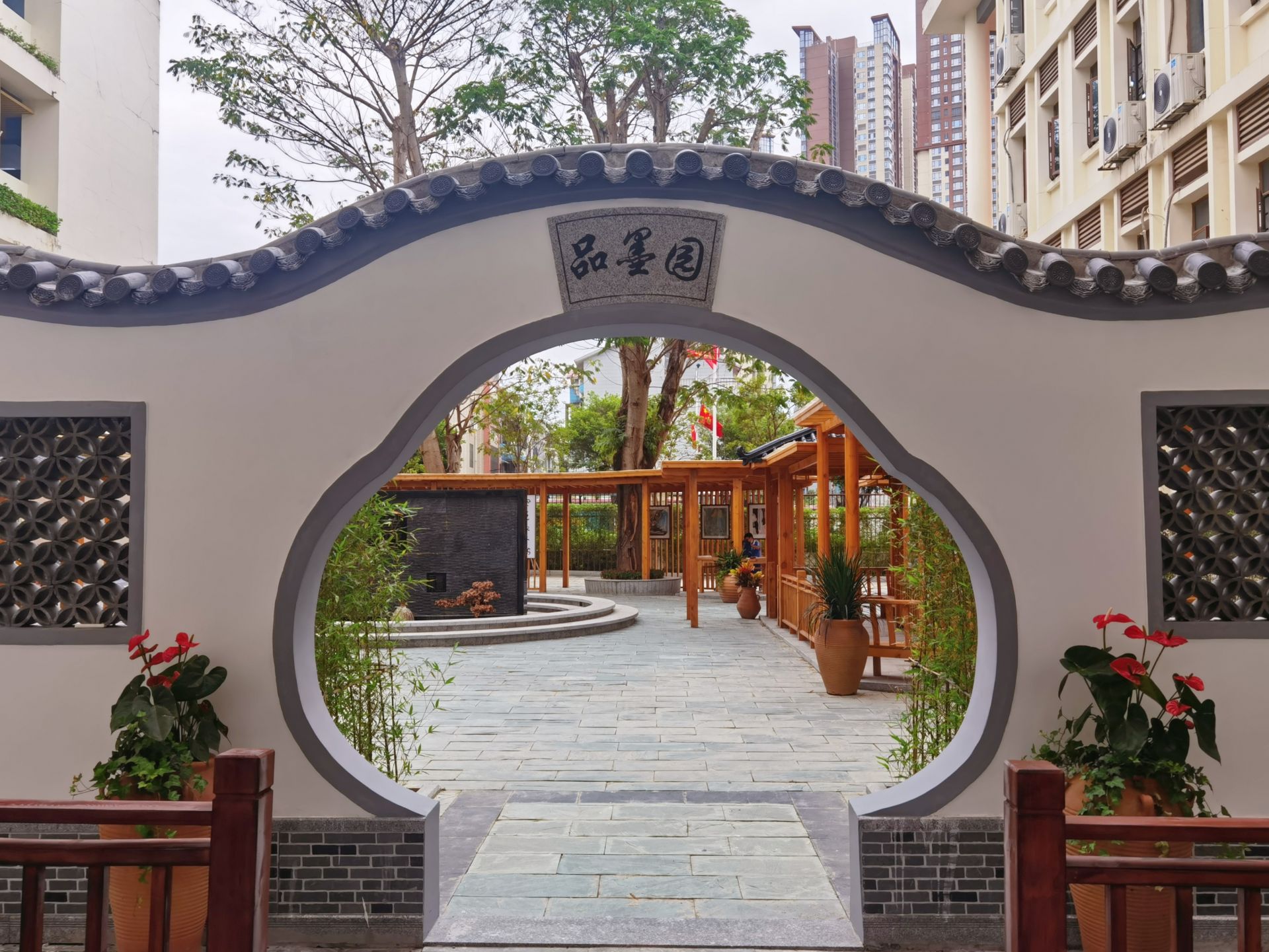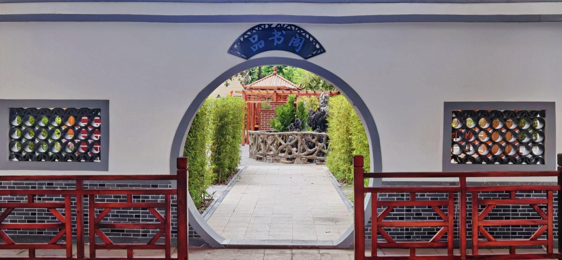 与此同时,为创建淡雅古朴的“品味校园”,学校精心打造“品书阁”和“品墨园”两大特色园区。其中“品书阁”内装饰有假山流水景观,并设置室外书柜和凉亭供学生课余时间休憩阅读;“品墨园”中除了展示中国书法名家作品外,也在仿古长廊上悬挂了不少老师作品以及梧桐学子的童真绘画。穿过竹林,漫步长廊,与教学楼融合一体的两大园区给予了学生充分的文化浸润和艺术熏陶,实现审美与教育功能的和谐统一。