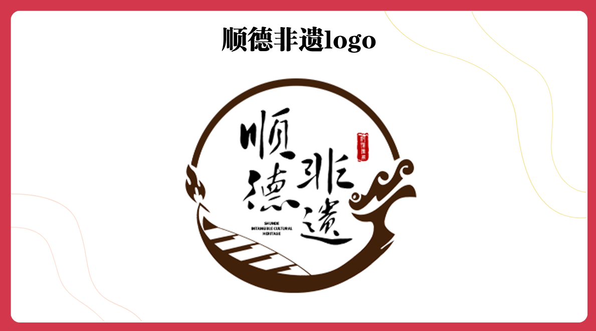 顺德非遗logo创意元素选取顺德最有特色,辨识度最高的“龙舟”进行创作。“龙首”代表激流勇进、奋勇拼搏的龙舟精神,也是顺德的城市精神之一;“龙身”寓意“开门见水、举步登舟”的顺德地理环境孕育出璀璨的岭南文化,也呼应以水兴城,打造岭南文化高地的顺德城市战略;最后以“凤尾”相连,寓意顺德非遗传承活力无限。Logo中主题和印章文字都是顺德本土书法大师亲笔题写,增添了顺德非遗logo的含金量和厚重感。