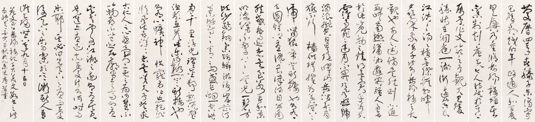 93岁的著名书法家沈鹏为本次展览题贺:“念智重,思无邪。生有尽,学无涯。书言志,如其人。求新异,守本真。锲不舍,艺曰成。”由他题词的“思无邪”也在展厅中展出。作为沈鹏学生的张智重,无论是在书法的学习还是创作中,对于诗意的追求始终置放于艺术的内核而不懈探索,并取得了属于他自己的独特且广阔的天地。