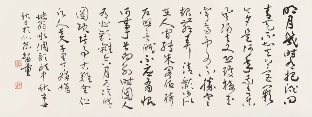 “求木之长者,必固其根本;欲流之远者,必浚其泉源”。张智重将书法创作之根深深扎在传统的土壤,笔耕不辍。即使外出旅行时,也将笔墨随身携带,日日不怠,久久为功。他强调传统文化的价值,从古典之中汲取了无限养分。在守正的基础上,将传统的笔墨元素继承下来,不断探索实践新的书法语境,形成具有鲜明特色的风格。