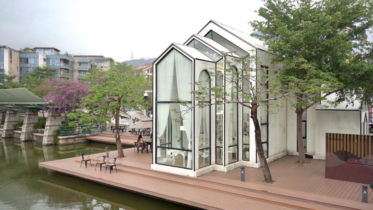 除了可以买买买,大梅沙8号仓还是一个隐藏的宝藏打卡地,仿欧式建筑与海边的蓝天白云相得益彰,而巨大的中心湖以及在湖中悠闲游弋的黑天鹅,给整个8号仓小镇带来了几分悠闲的惬意。湖边还坐落着一栋米白色的公共图书馆,大面积的落地玻璃窗与三角穹顶使得它在湖边十分醒目,吸引了不少游客在此打卡留念。假日来到这里,一杯咖啡、一本读物配上如此美景,便可让你度过一段怡然悠闲的时光。