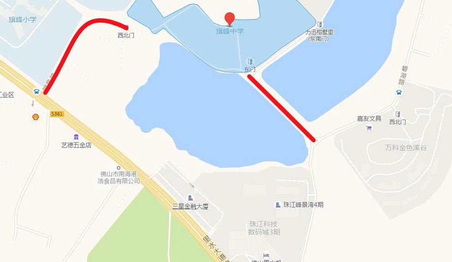 北往南:湖景路→绿景三路→南海大道→魁奇路